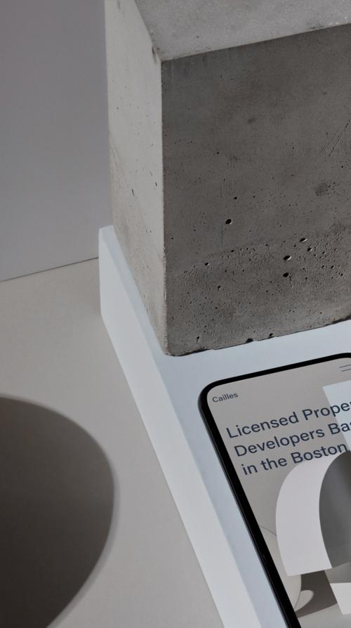 Upright smartphone displaying a mobile website, lined up alongside several blocks